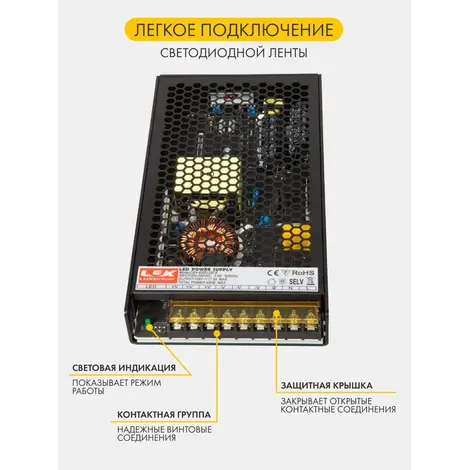 Предназначен для подключения светодиодной ленты мощностью до 350W (рекомендуемый запас мощности 20%).