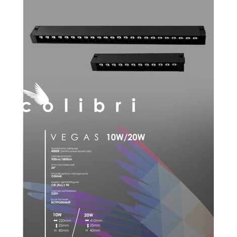 COLIBRI трековый светильник VEGAS черный, 10W/4000К/900Лм (220*25*41)