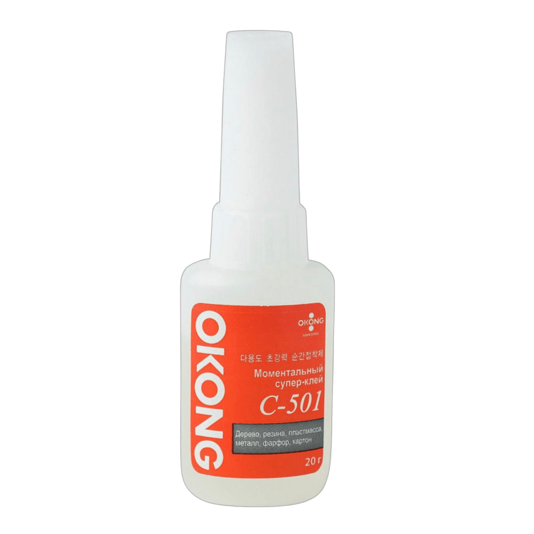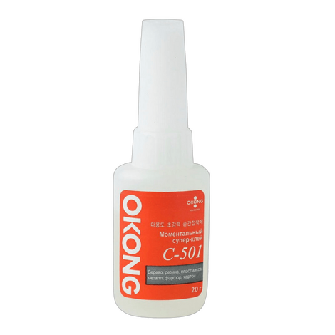 Клей “OKONG” С-501 20гр. Быстро полимеризующийся, однокомпонентный цианакрилатный клей с низкой вязкостью. Предназначен для материалов, трудно поддающихся склеиванию. Поверхностная влага в меньшей степени влияет на скорость вулканизации, чем у других стандартных сортов цианакрилатов.