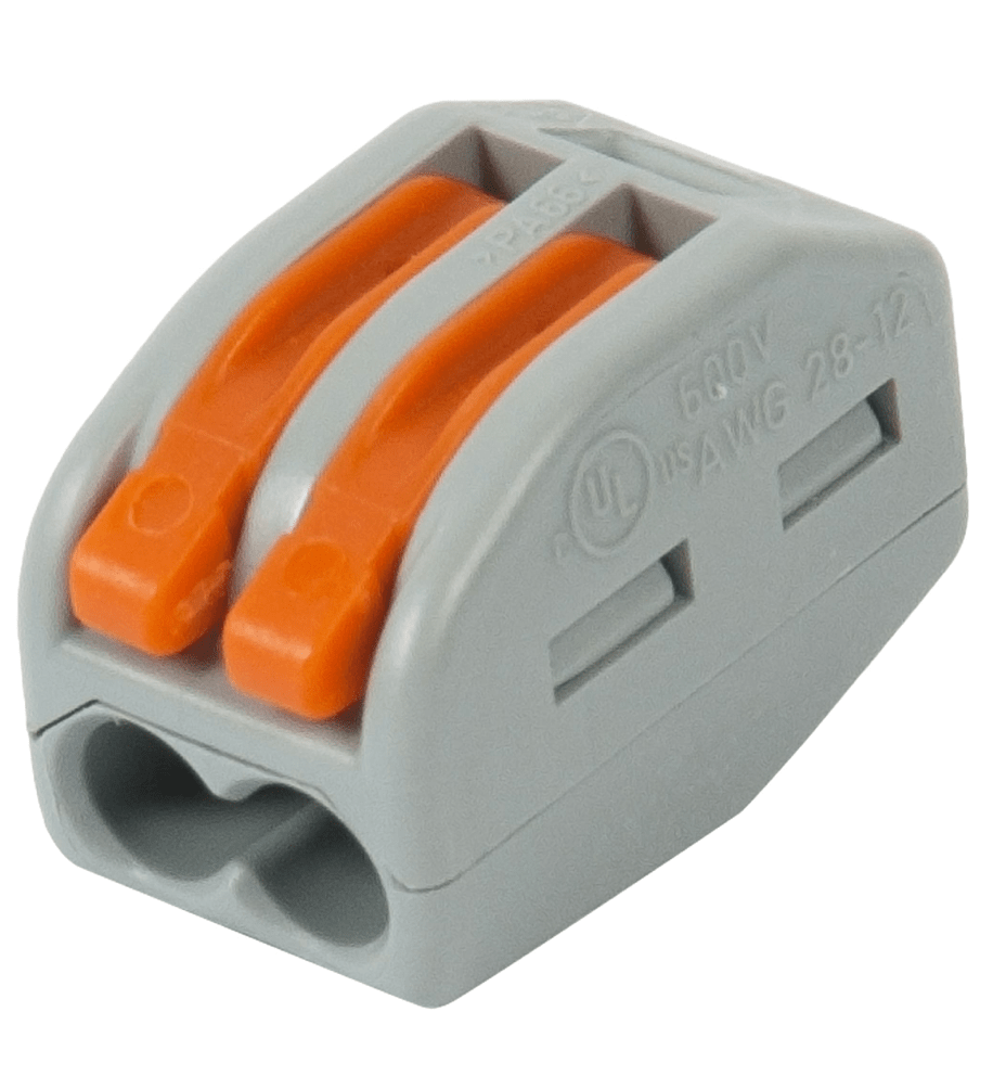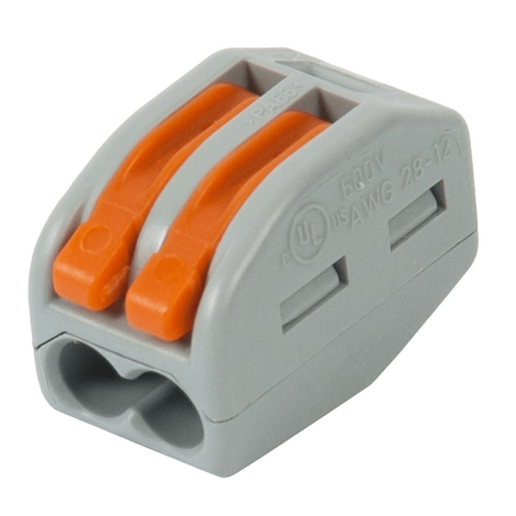 Соединительные клеммы с CAGE CLAMP® COMPACT-зажимом соединяет 2, 3 и 5 зачищенных тонкопроволочных проводников от 0,08 мм2 до 4 мм2, одно и многожильные до 2,5 мм2.