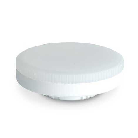 Светодиодная лампочка в форме таблетки с цоколем GX53 обладает мощностью в 8 Вт. Цветовая температура — 5000К, т.е. дневной белый свет. Изделие рассчитано на использование в сети с переменным напряжением в 175-265В.