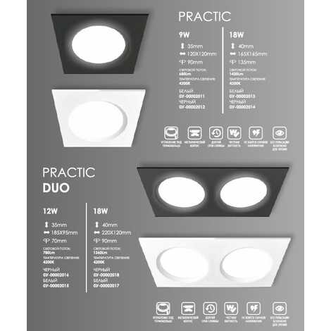 LED Панель квадратная PRACTIC Белая, 9W, 4200K, 120*120