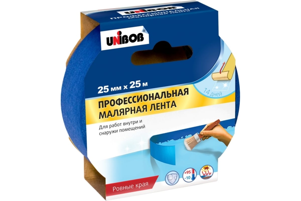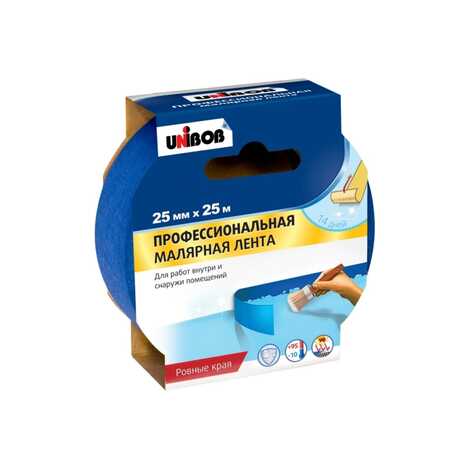 Малярная лента профессиональная д/наружных работ UNIBOB 25мм*25м, синяя