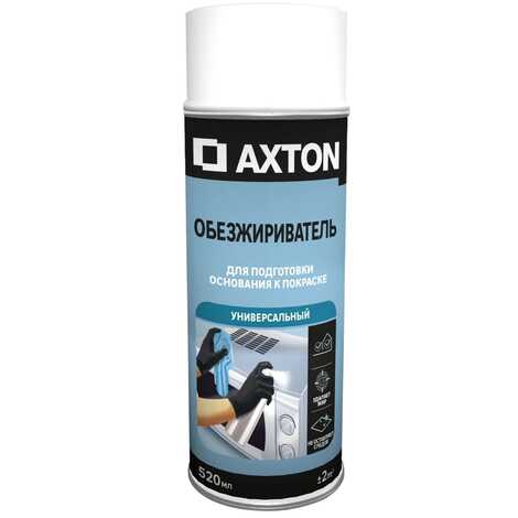 Универсальный обезжириватель Axton применяется для подготовки и обезжиривания поверхности перед покраской. Не оставляет следов, эффективно удаляет жир, подходит для внутренних и наружных работ. Подходит для металла, дерева, пластика. Не подтекает. Баллона объемом 520 мл хватит для обработки 2 м² поверхности.