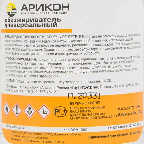 Обезжириватель универсальный подходит для удаления всех типов масел и жиров.