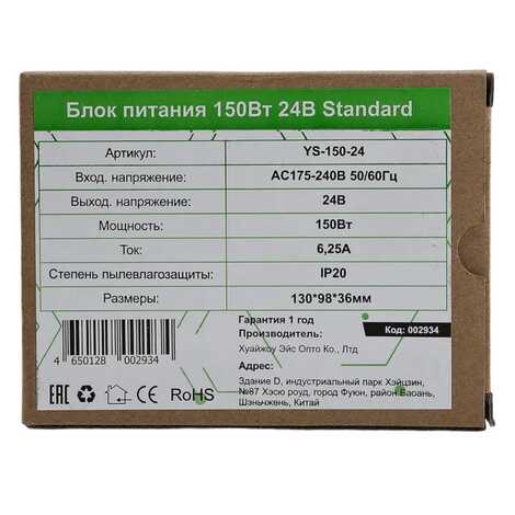 Блок питания для светодиодной ленты LEDS POWER (серия Standard), 24В, 150Вт, 6.3А, IP20.