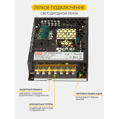 Блок питания для светодиодной ленты LUXDriver, 24В, 150Вт, 6.3А, IP20.