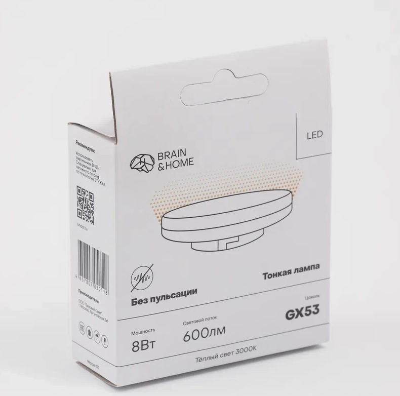 BH53 Светодиодная ТОНКАЯ лампа GX53 8W 3000K CRI90