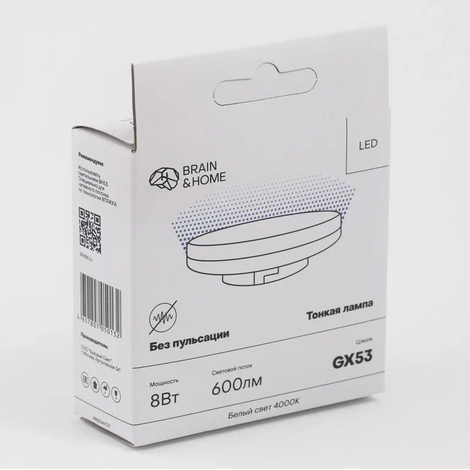 BH53 Светодиодная ТОНКАЯ лампа GX53 8W 4000K CRI90