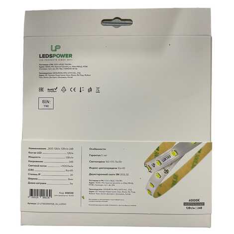 Светодиодная лента LEDS POWER 2835 12Вт/м, 24В, 128д/м, нейтральная LUX160
