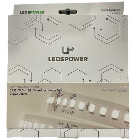 Светодиодная лента LEDS POWER 2835 16Вт/м, 24В, 176д/м, нейтральная LUX