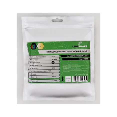 Светодиодная лента LEDS POWER 5050 60д/м, 19,2Вт/м 24В RGB+CCT позволяет создавать как яркую цветную подсветку, так и регулировать оттенок белого света, выбирая между тёплыми, нейтральными и холодными тонами. Такая лента обычно имеет степень защиты IP20 и предназначена для использования внутри сухих помещений.