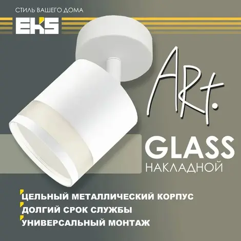 Точечный поворотный светильник ART GLASS можно использовать для освещения и подсветки в жилых, офисных и коммерческих помещениях. Стильный накладной спот станет отличным дополнением современного интерьера. Создавайте неповторимую атмосферу в Вашем доме с помощью светильников EKS!