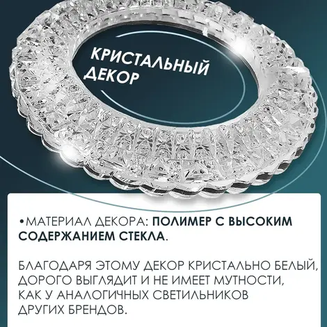 •100% состоит из стекла, что обеспечивает оптимальную прозрачность декоративного элемента, создает неповторимый ореол подсветки. Данный материал не желтее со временем и не имеет мутности.