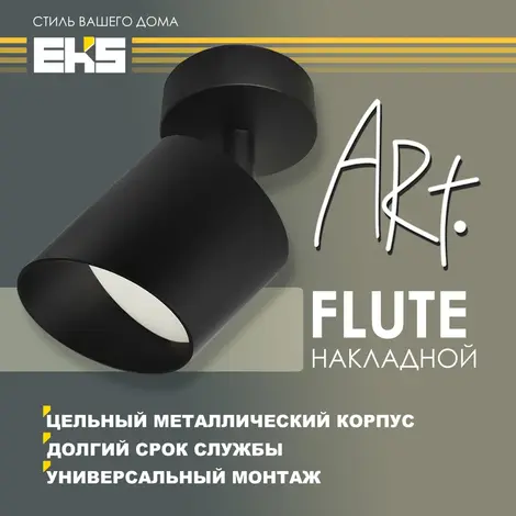 Накладной светильник EKS Art Flute отличное решение для декоративного и акцентного интерьерного освещения. Благодаря специальному поворотному механизму светильник можно устанавливать под нужным углом для направленного освещения.