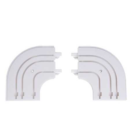 Повороты изготовлены из прочного белого пластика. Они устанавливаются по краям потолочной шины. Благодаря поворотам, шина приобретает эстетически завершенный вид.