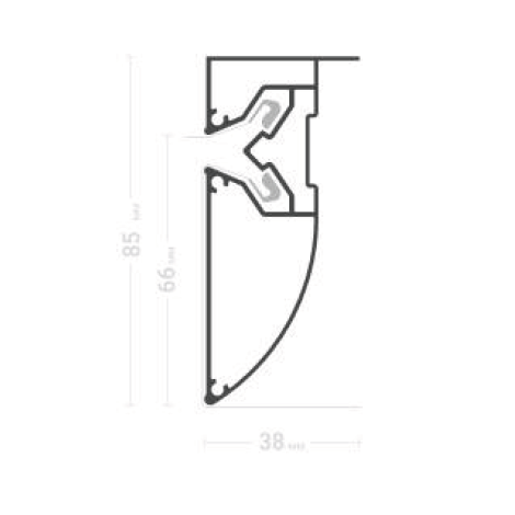 НАПИЛЕННЫЙ профиль Flexy STANDART 04 для криволинейных многоуровневых натяжных потолков с гарпунной системой крепления полотна. С разделительной вставкой. Без подсветки. Напиленный.