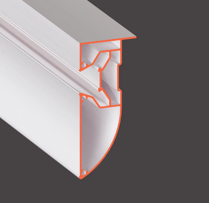 Профиль Flexy LED 03 для многоуровневых натяжных потолков с гарпунной системой крепления полотна. С полкой для светодиодной ленты и светорассеивающей вставкой.