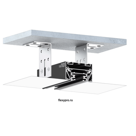 Разделительный профиль Flexy TREK 01 для натяжных потолков с гарпунной системой крепления полотна. Для установки однофазной трековой шины. Для изготовления встраиваемых и накладных световых линий, подвесных и накладных светильников, щелевых вытяжек.