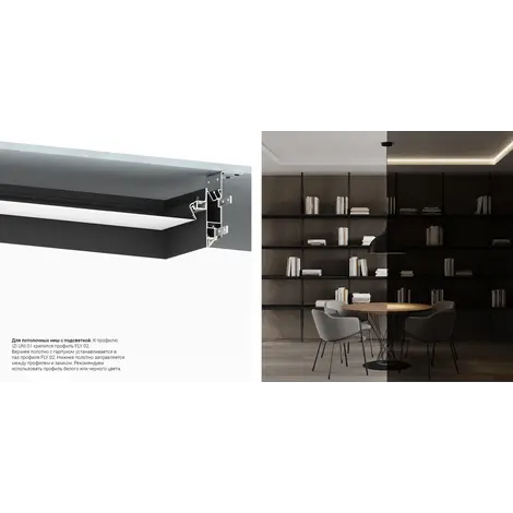 Профиль Flexy IZI UNI 01 для изготовления потолочных ниш и светильников. Профиль окрашен в белый муар.