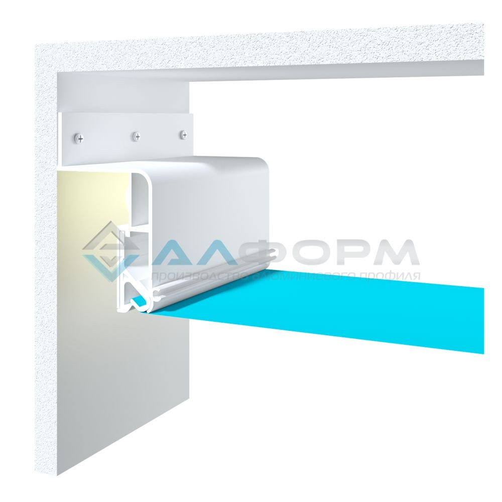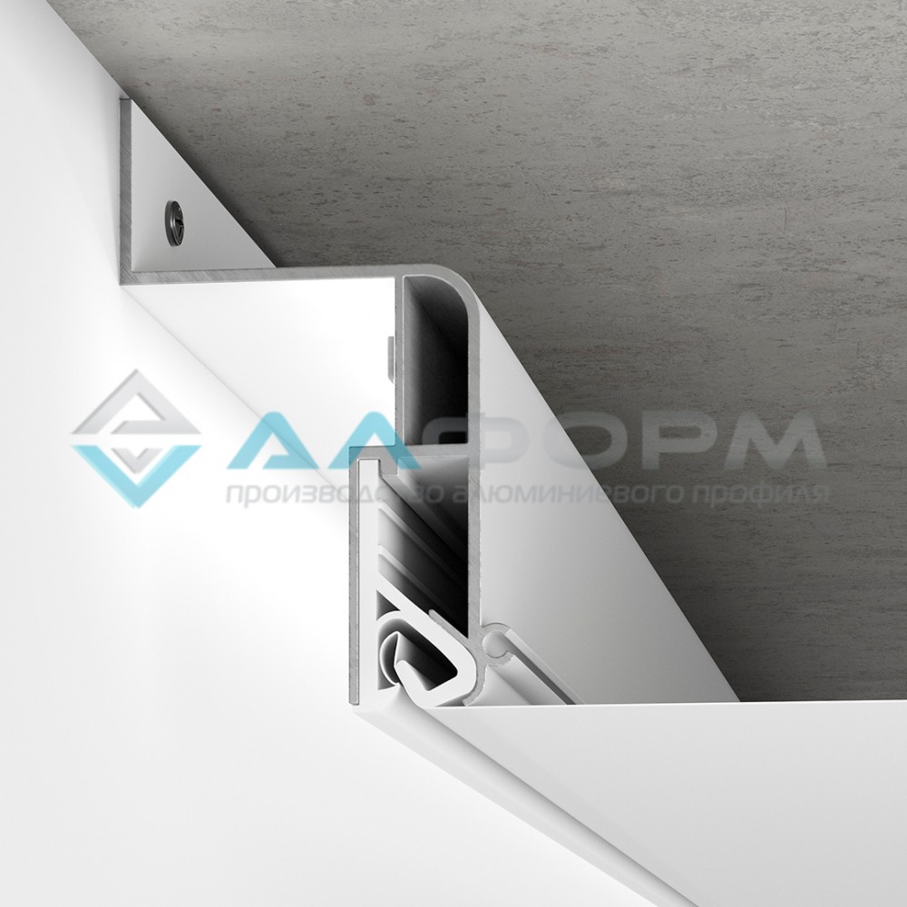 М1 - профиль для создания парящего потолка с тканевым полотном. Цвет - черный. Для монтажа также необходим стеновой профиль-прищепка для тканевых потолков, который плотно фиксируется в багете М1. Длина профиля - 2м.