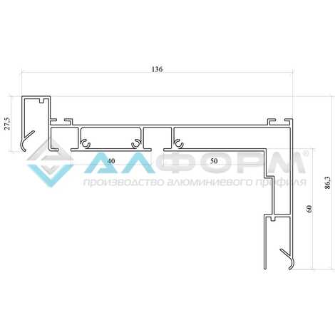Белый алюминиевый профиль для создания двухрядного скрытого карниза с креплением тканевого натяжного потолка в разных плоскостях.
