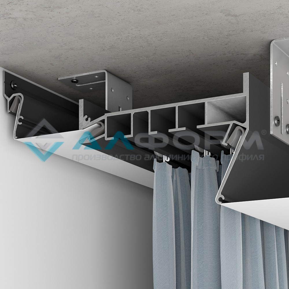 Профиль ПК-12 ЧЕРНАЯ (скрытая гардина, трехряд., 3.2м)