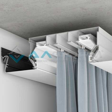 Длина профиля - 3,2м, 2 ряда для крепления штор.