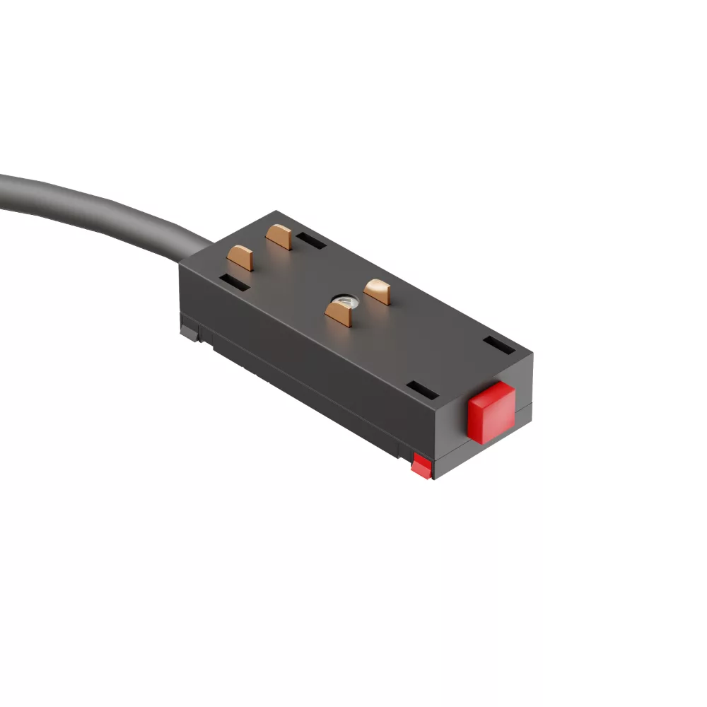 Выполнен из чёрного пластика с токопроводящими медными контактами и после установки в трек абсолютно незаметен.