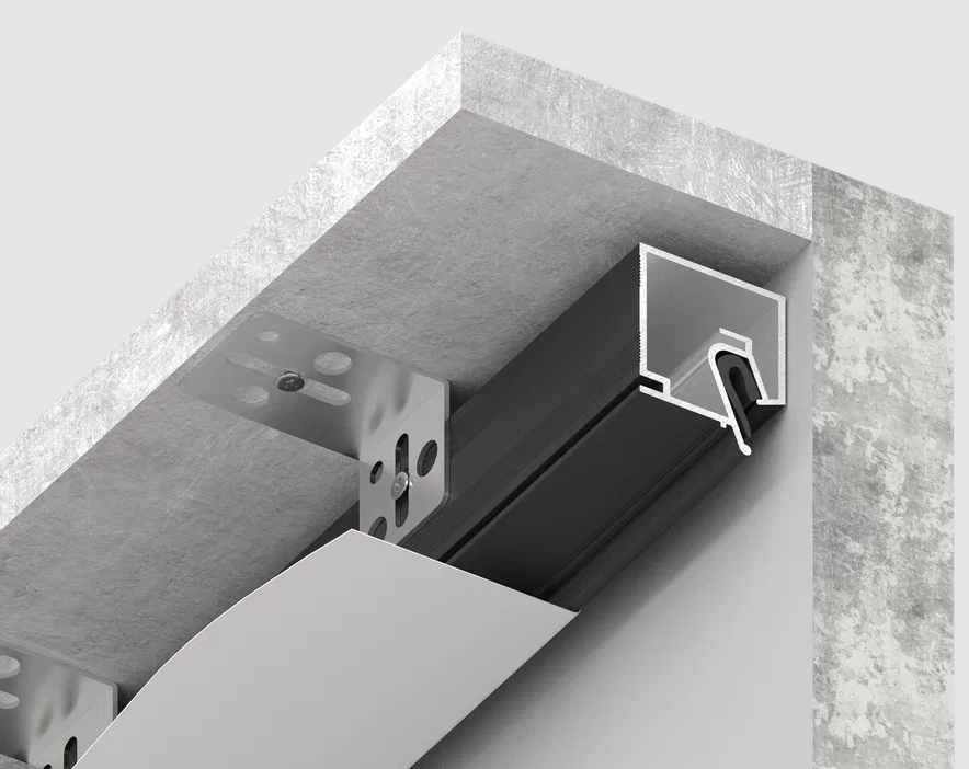 Создан для решения проблемы там, где крепление к стене невозможно: керамогранит, крепление к мебельным доборам. Окрашен в порошковую краску муар для лучшей адгезии. Такая версия окрашивания способствует эффекту маскировки. Для монтажа потребуются только дополнительные потолочные консоли.