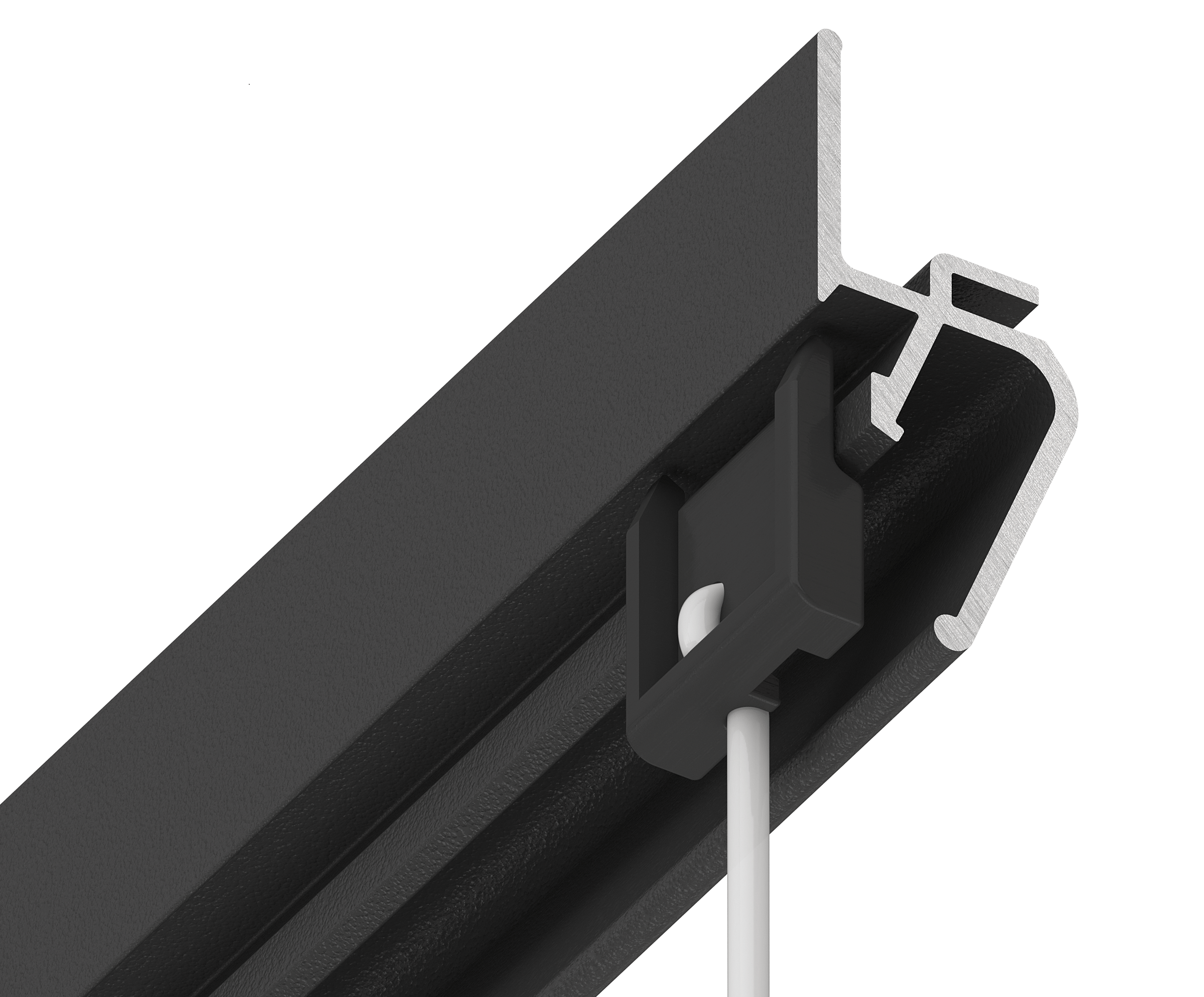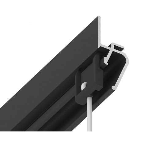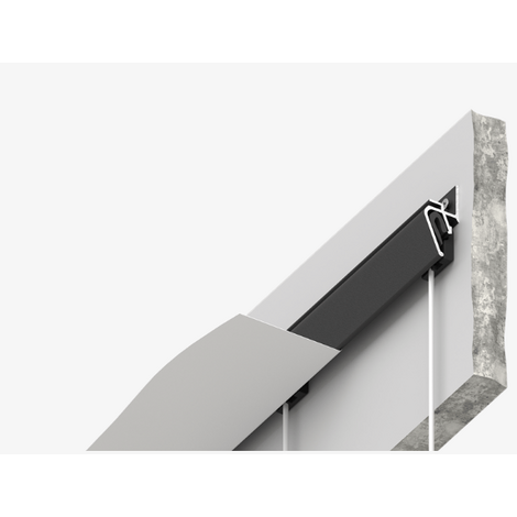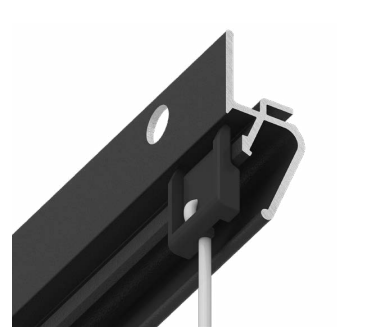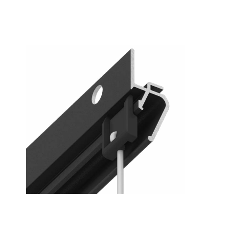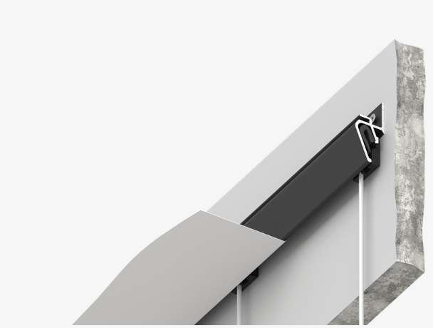 Решение представляет собой алюминиевую конструкцию EUROKRAAB, внутрь зазора вставляются специальные клипсы механическим способом, из которых тянется тонкий прозрачный подвес с крючком. Теперь можно не портить стены и обойтись без дополнительных инструментов.