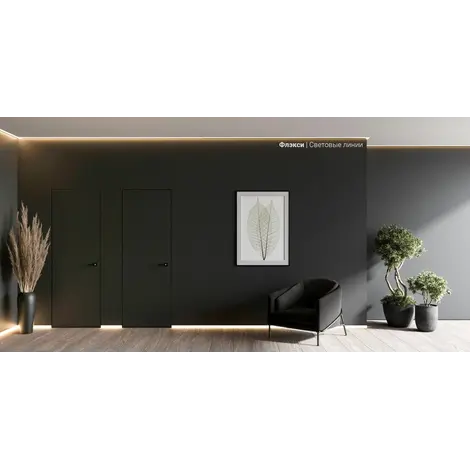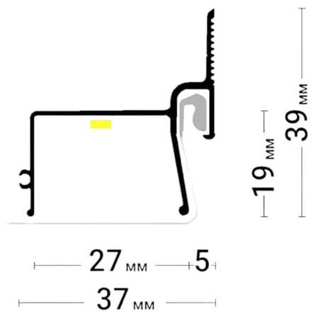 Стеновой контурный профиль Flexy KONTUR 03 для натяжных потолков с гарпунной системой крепления полотна. С полкой для светодиодной ленты для подсветки через полотно, направленной вниз. С теневым зазором.