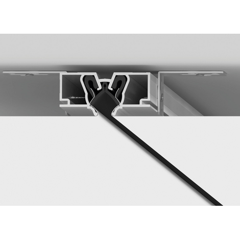 Разделительный профиль SLIM R – система для стыковки ПВХ полотен в виде ровного теневого зазора. Используется как из-за технической необходимости (обход колонны, стыковка полотен при ширине помещения более 6 метров), так и по эстетическим соображениям.