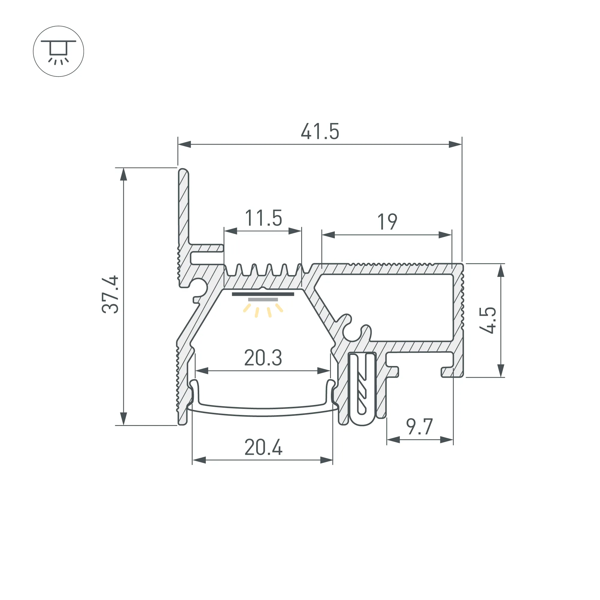 Алюминиевый профиль черного цвета - RAL9005 (порошковая окраска). Боковая линия света в натяжных потолках. Решение 2-в-1: служит каркасом для крепления натяжного потолка и профилем для установки светодиодной ленты. Источник света находится вровень с плоскостью натяжного потолка. Демпферная система крепления полотна натяжного потолка подходит как для тканевых, так и для ПВХ полотен. Габаритные размеры профиля составляют 2000 мм в длину, 41,5 мм в ширину и 37,4 мм в высоту. Основная площадка для установки светодиодных лент шириной до 11,5 мм и две дополнительные площадки шириной по 10мм. Это обеспечивает гибкость в выборе светодиодных лент и создает потрясающие световые решения. Экран и другие аксессуары не включены в комплект и приобретаются отдельно. Цена указана за 2 метра профиля. Отличное решение для создания современных световых проектов.