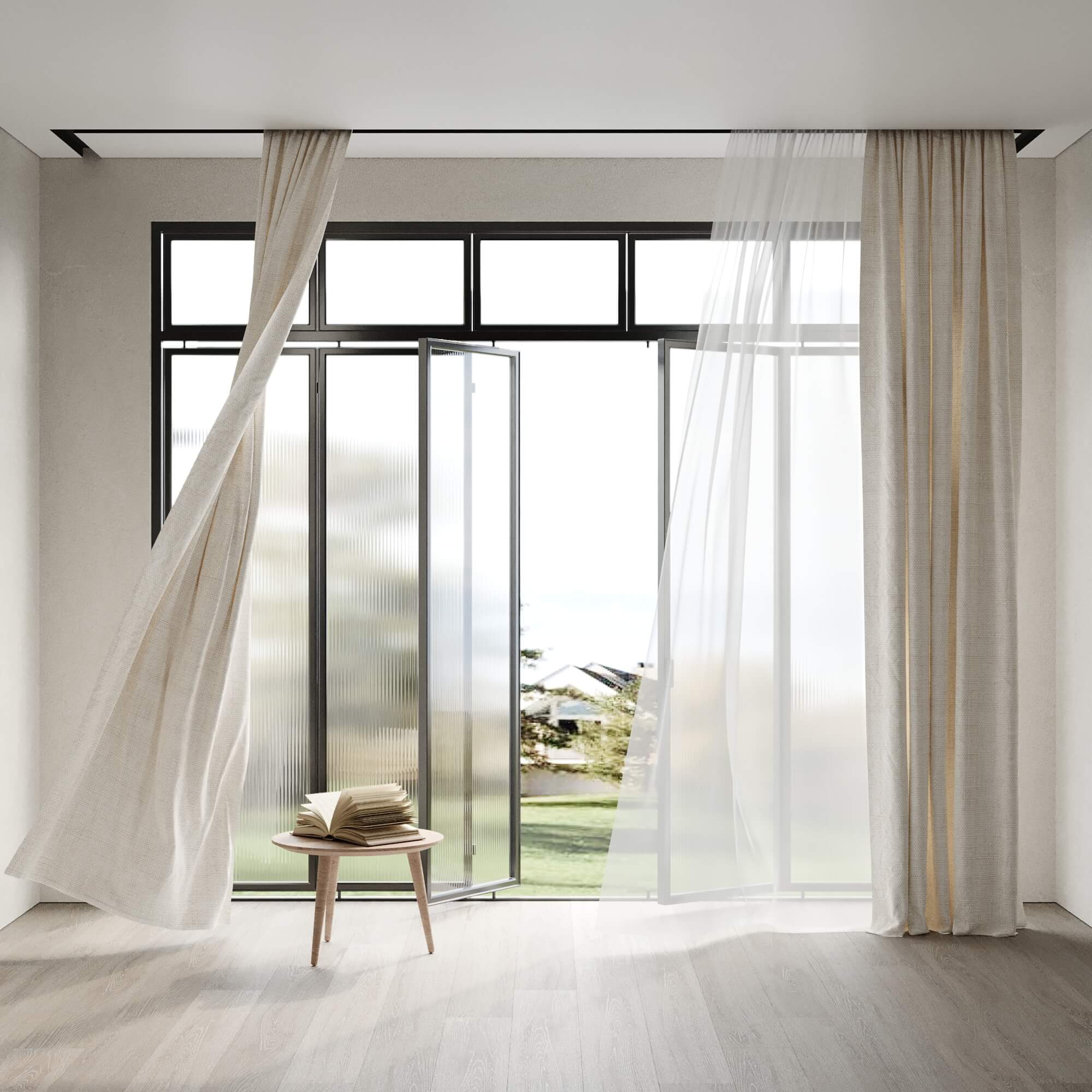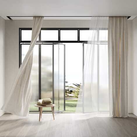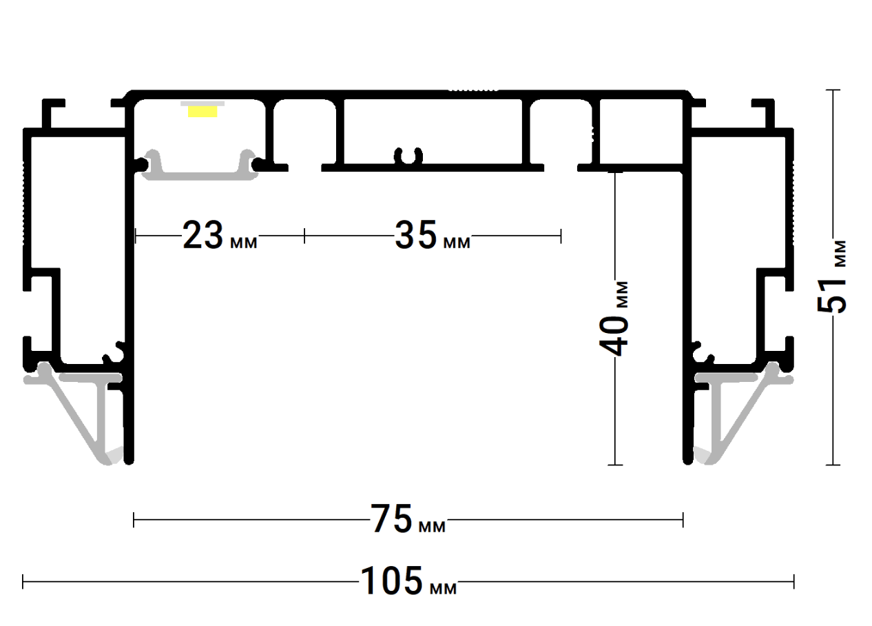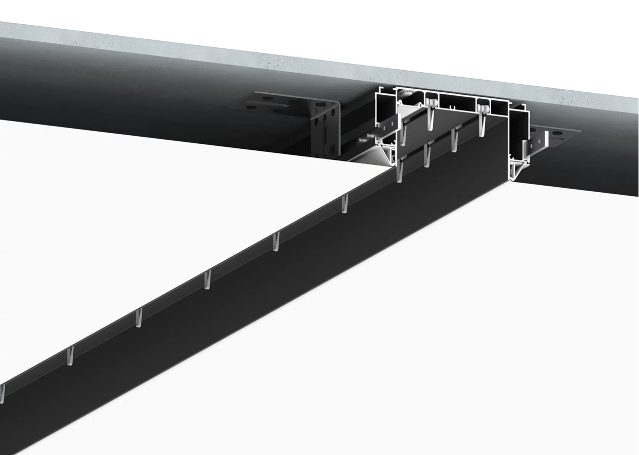 Белый профиль Flexy IZI KARNIZ2 05 для изготовления скрытых п-образных карнизных ниш с двумя пазами для установки штор и гардин. С подсветкой.
