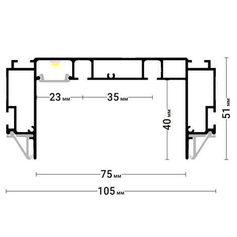 Белый профиль Flexy IZI KARNIZ2 05 для изготовления скрытых п-образных карнизных ниш с двумя пазами для установки штор и гардин. С подсветкой.
