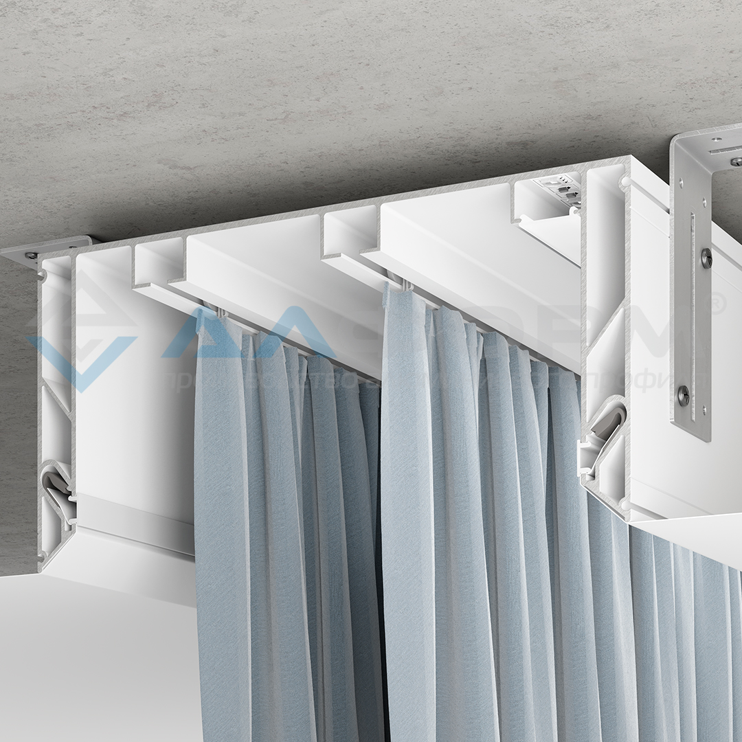 •Расстояние 60 мм до первого ряда штор и 55 мм до второго