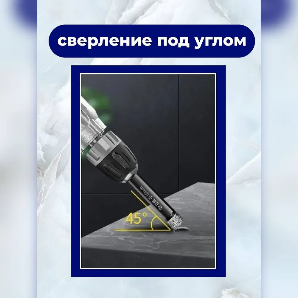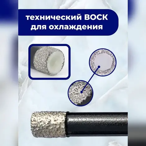 Алмазная коронка предназначена для бесшумного и быстрого сверления отверстий в керамограните и мраморе. Она идеально подходит для использования с шуруповертом или дрелью. Коронка обладает высокой прочностью и долговечностью благодаря алмазному покрытию, которое обеспечивает надежное сверление без сколов и трещин. Кроме того, использование воска во время сверления позволяет эффективно охлаждать коронку, предотвращая ее перегрев и улучшая ее работу. Эта алмазная коронка является незаменимым инструментом для профессионалов и любителей, работающих с керамогранитом и мрамором.