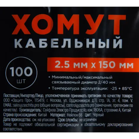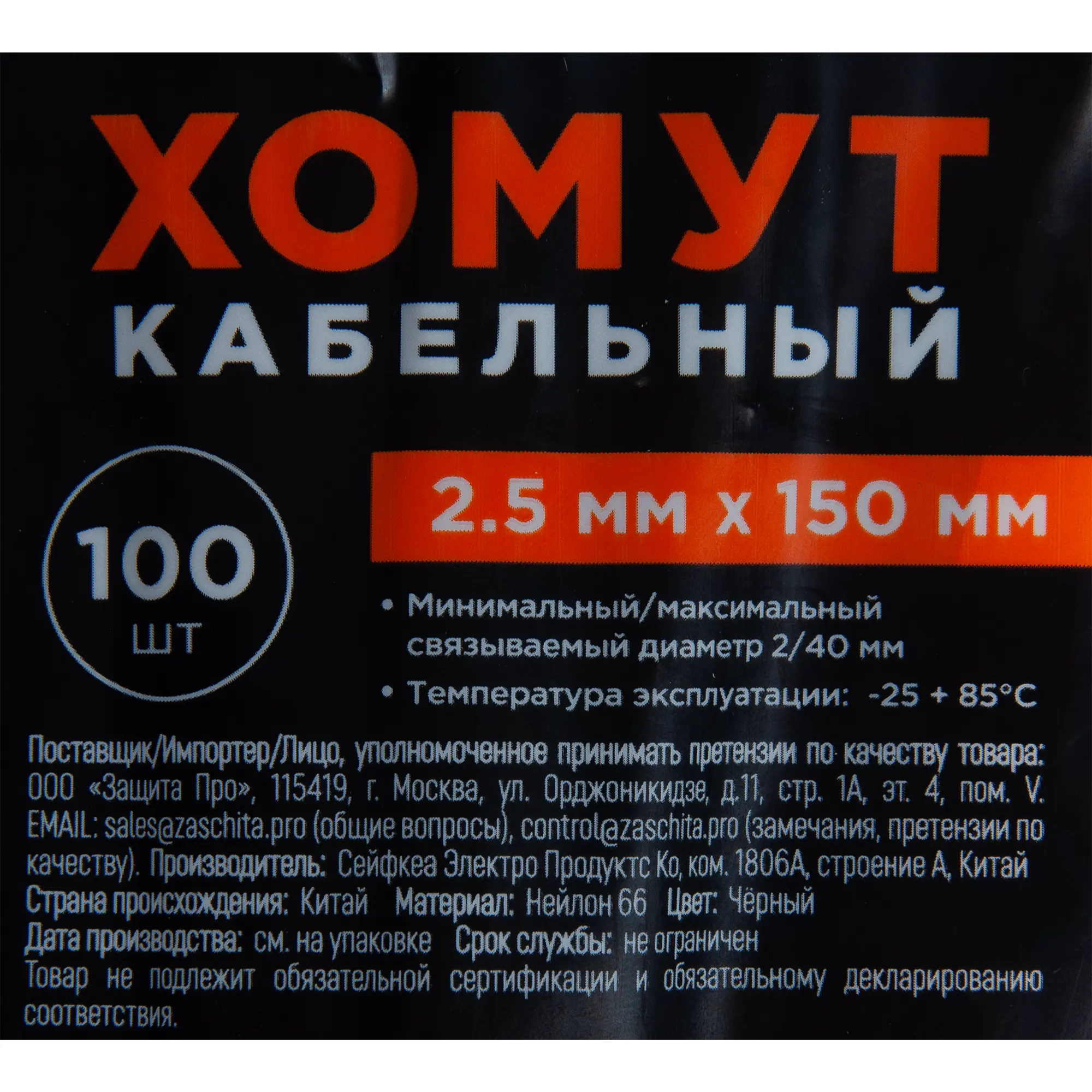 Стяжки кабельные 2,5*150мм(100шт/уп)