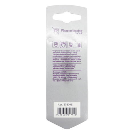 Сверло по керамической плитке и стеклу с алмазной заточкой — отличный выбор инструмента для получения отверстий в керамической плитке любой твердости, незакаленном стекле, керамике и фарфоре. Диаметр 6 мм.